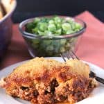 Scoop the cornbread mixture on top of the chili, spreading it out as much as possibly to completely cover it. It is best to work in small amounts to ensure even coverage.