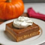 While crust is baking, make the filling. In a large bowl combine pumpkin, coconut sugar, coconut milk, eggs, cinnamon, pumpkin spice, and salt. Whisk until completely smooth.