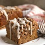 Make the glaze. Make sure the coconut butter is soft first. You may need to microwave it for 30 seconds and stir first. In a small bowl, combine the coconut butter, maple syrup, vanilla and water. Add the water as needed until smooth. Drizzle over coffee cake.