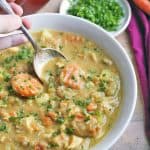 Remove the chicken to a cutting board and add in the coconut milk to the soup mixture.